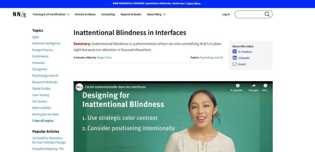 Voir la vidéo en anglais : https://www.nngroup.com/videos/inattentional-blindness-in-interfaces